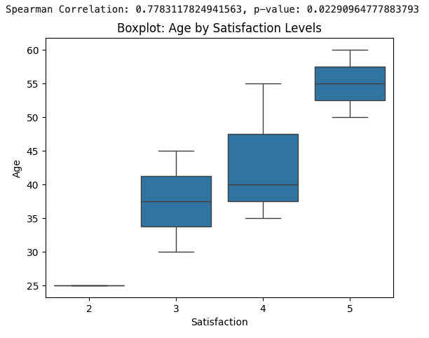 You can visualize the relationship with a scatter plot and a regression line provides an intuitive view of how satisfaction changes with age.